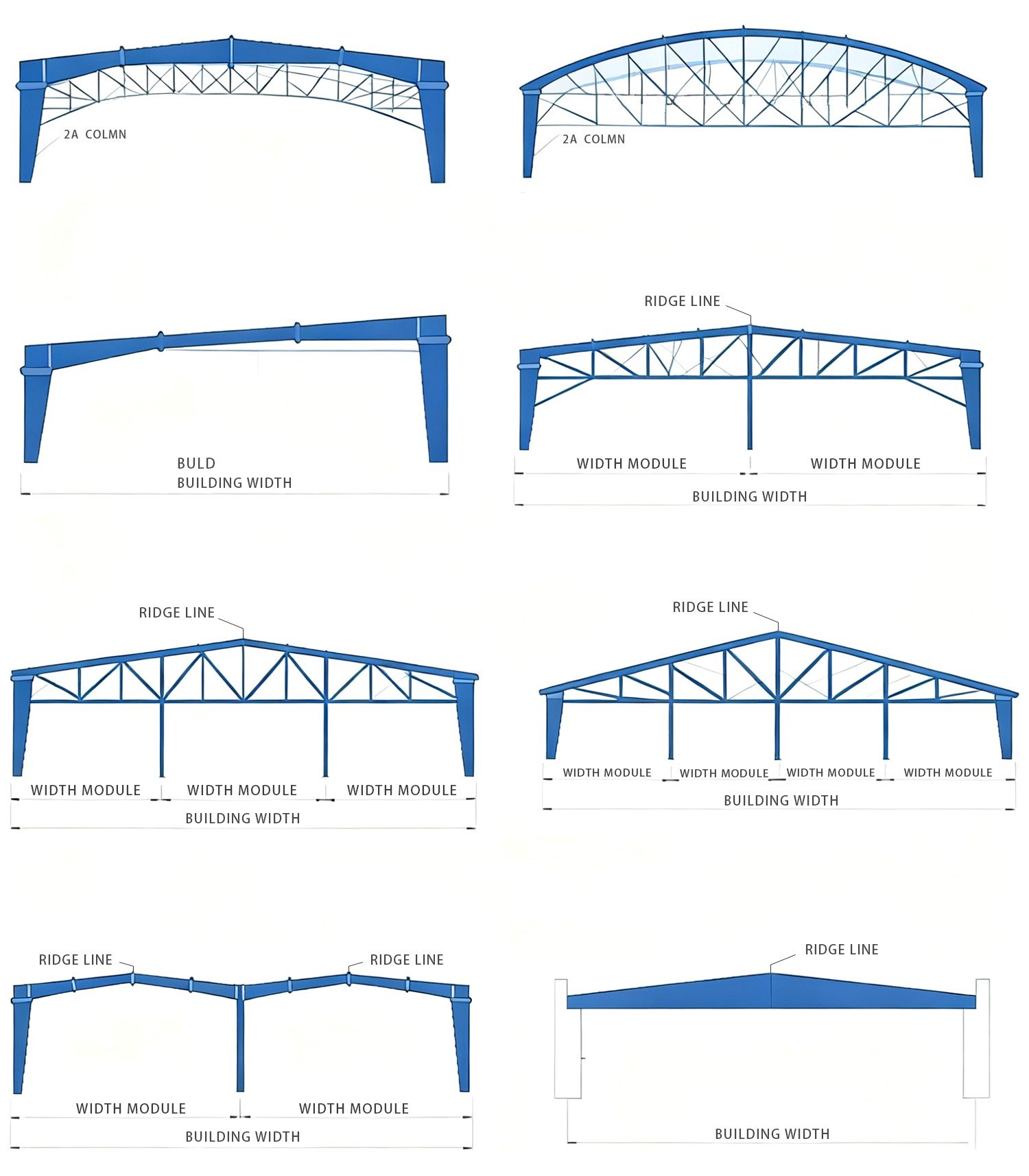 Industrial Steel Structures: Warehouses, steel workshops, hangars, garages, chicken coops, sheds, exhibition halls, parking lots, agricultural storage facilities, logistics centers.
