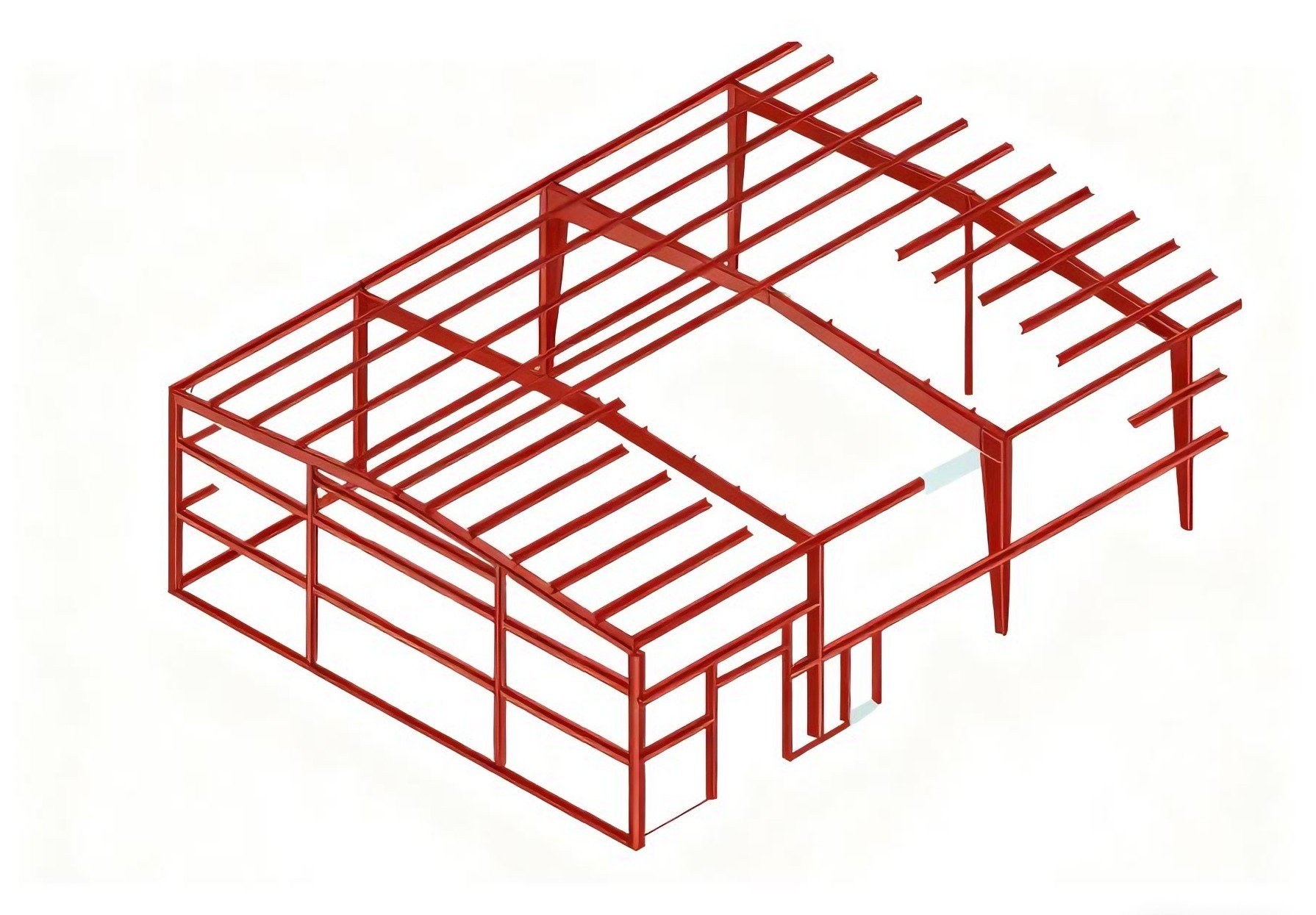 • Main beams and columns are all made of high-quality steels Q355B, Q345B, Q235B (suitable for steel structure workshops)