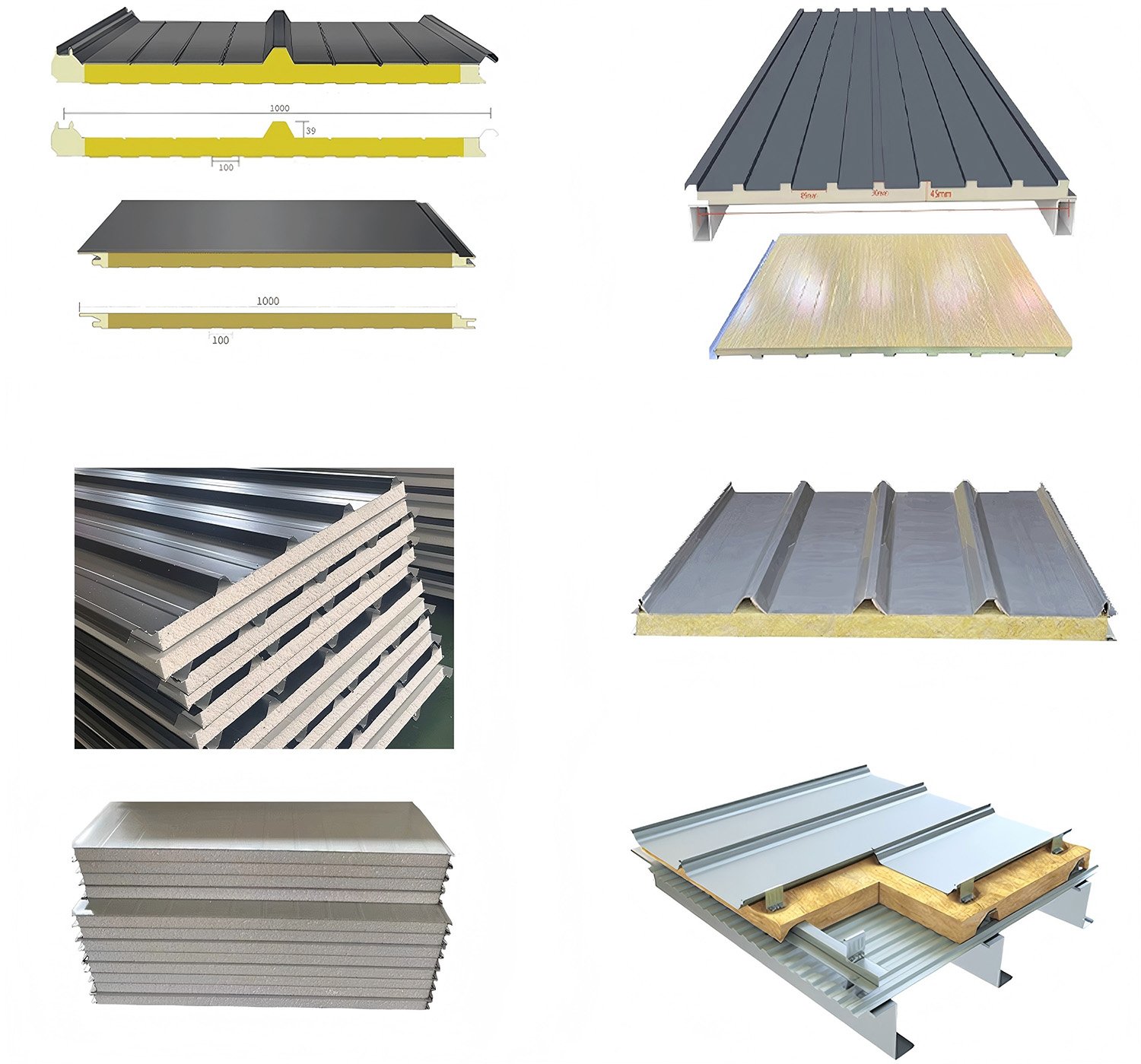 Sandwich panels are composite insulation panels made by combining steel sheets on both sides with thermal insulation core materials through adhesives (or foam). The core materials can be EPS (polystyrene), rock wool, or PU (polyurethane). They come in various thickness specifications, including 50mm, 75mm, 100mm, 150mm, and 200mm.