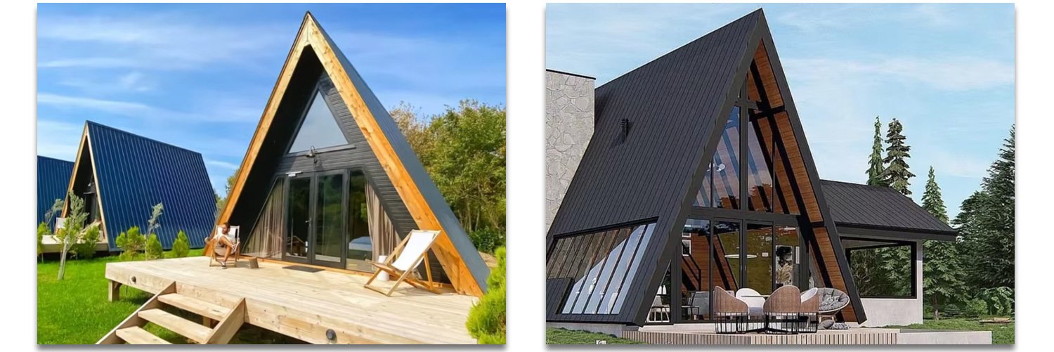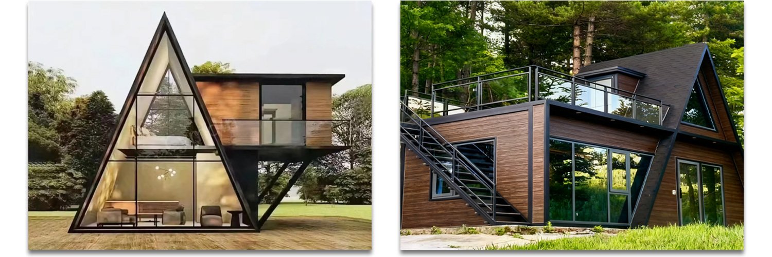 3.Modern triangular houses adopt galvanized steel or steel-wood frames with prefabricated modular assembly, offering higher rigidity and better seismic/wind resistance than traditional lightweight buildings.